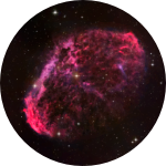 Located about 2,300 light-years away, M57 is small in the sky but relatively bright, making it a favorite for amateur astronomers. In modest telescopes, it looks like a tiny, pale gray ring — often described as a “cosmic doughnut”. In long-exposure photographs, it shows beautiful shades of blue, green, and red, representing different gases glowing in the ultraviolet light from the hot central star.