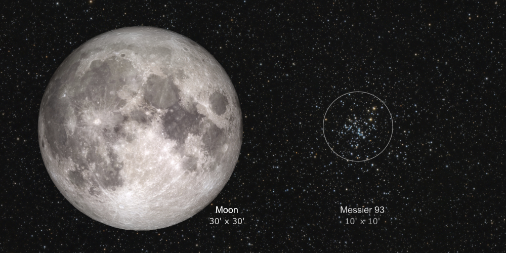 To the naked eye under dark skies, Messier 93 is beyond reach for most observers. Its low elevation and modest brightness make it a hidden treasure that requires at least binoculars to truly reveal itself.