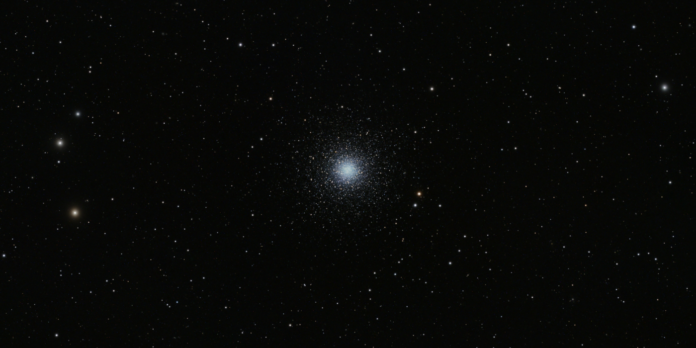 With a medium telescope, M53 becomes more rewarding. The halo resolves into dozens of stars scattered around its compact, intense core. The contrast between the glittering outer members and the dense, unresolved center gives it a layered, three-dimensional look.