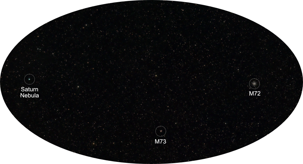 ✅ Pair It with Its Neighbors Don’t just stop at M72 — slide your scope slightly to spot M73, the tiny four-star asterism, and then move to the Saturn Nebula for a bright planetary. Observing all three in one sweep makes the hunt for M72 especially rewarding.