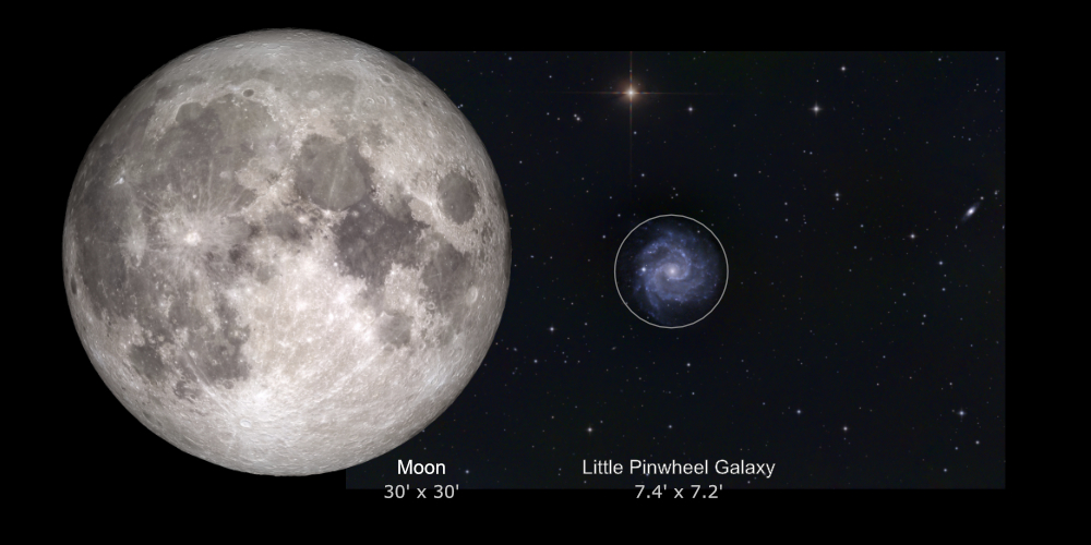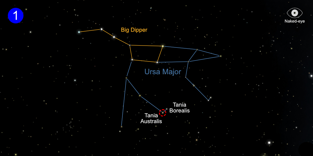 Using a telescope finder, point to Tania Australis and center it in a low-powered eyepiece. Slowly scan west just under a degree looking for a soft, round haze of light. Once you’ve confirmed the faint glow, center it in your eyepiece. Then increase power gradually to draw out the galaxy’s bright core and faint outer disk.clearly.